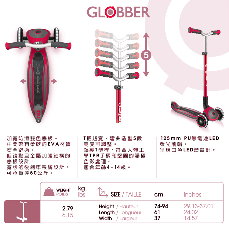 『GLOBBER哥輪步』來自法國的品牌─專為兒童設計;滑板車是發展兒童學習平衡最理想的玩具,並幫助您的孩子學會滑行和掌握滑板車訓練平衡感,以較低的腳踏板設計及可任意固定前輪方向和調整適合高度騎乘……等符合多功能人體工學之設計。