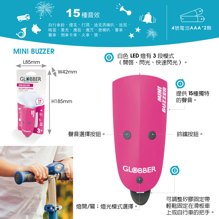 法國 GLOBBER MINI BUZZER 電子鈴噹(多色可選)