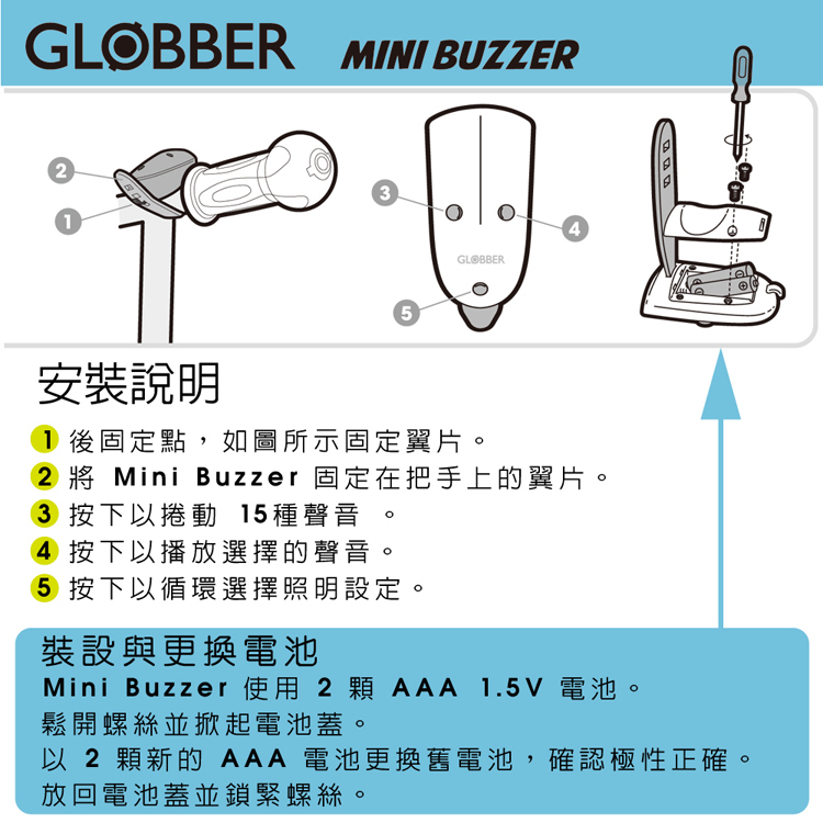 ●法國 GLOBBER 哥輪步 MINI BUZZER 電子鈴噹