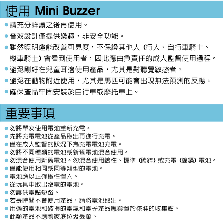 請勿混用鹼性,標準(碳鋅)或可充電(鎳鎘)電池。