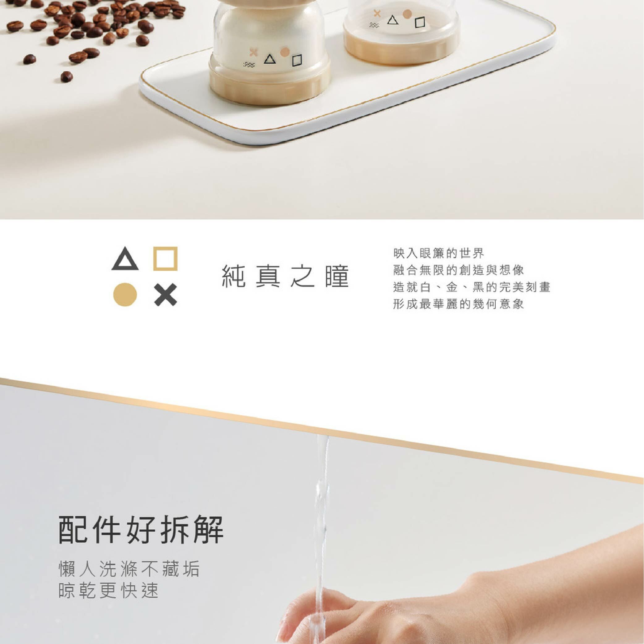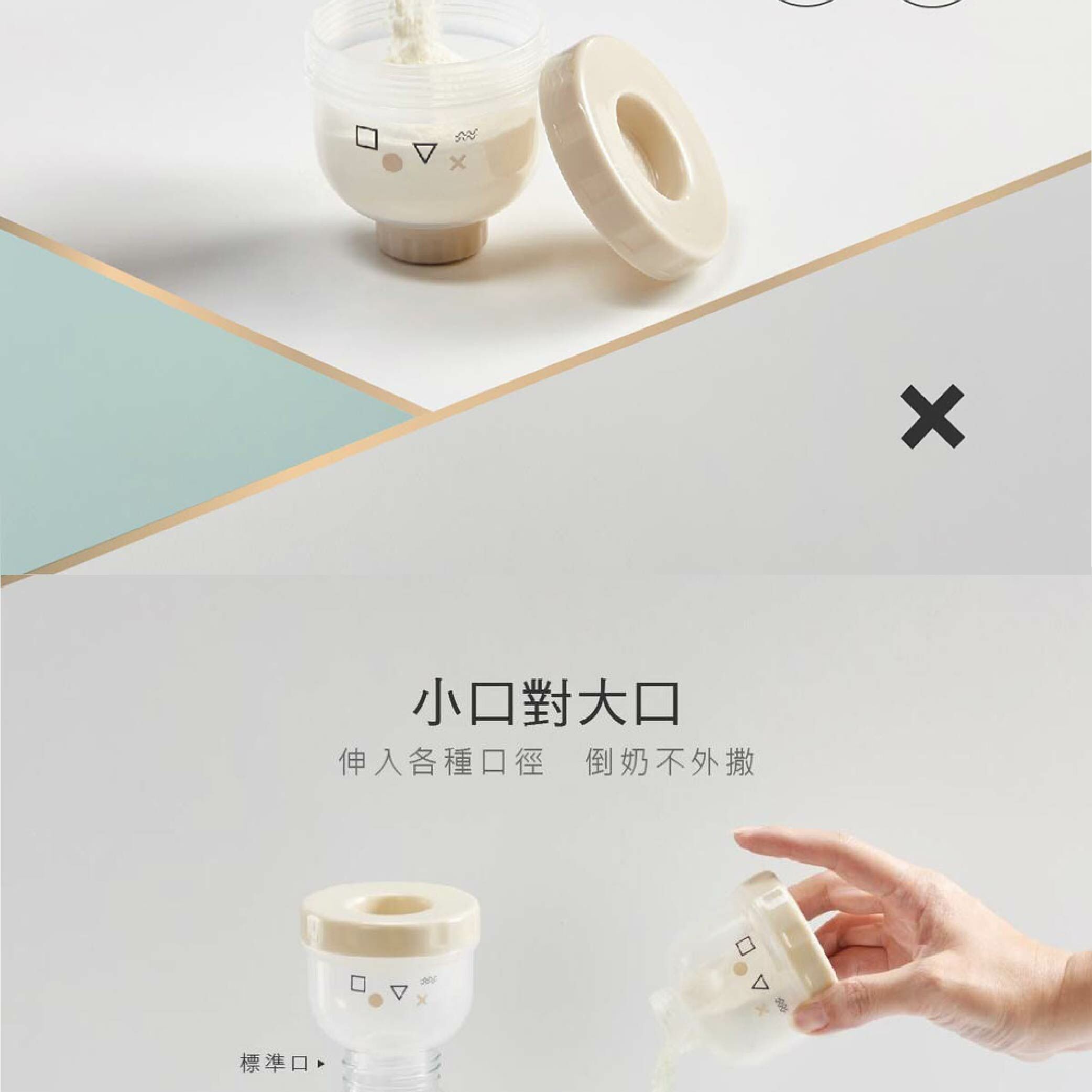 圓滑的漏斗型出口,滑順快速奶粉不殘留,清洗容易。