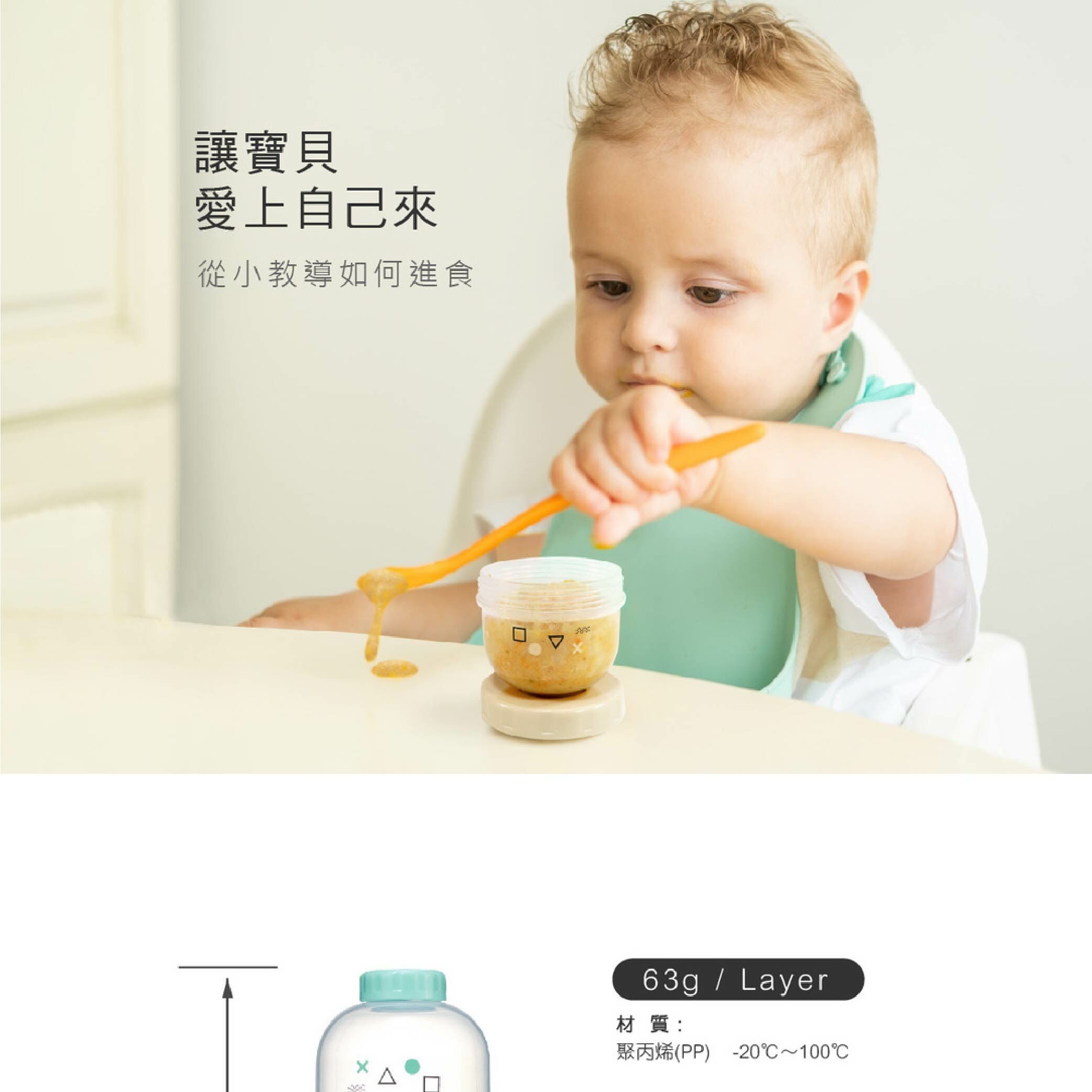 不用再更換盛裝容器,只須將上下蓋結合即可變成離乳碗,輕鬆又方便。