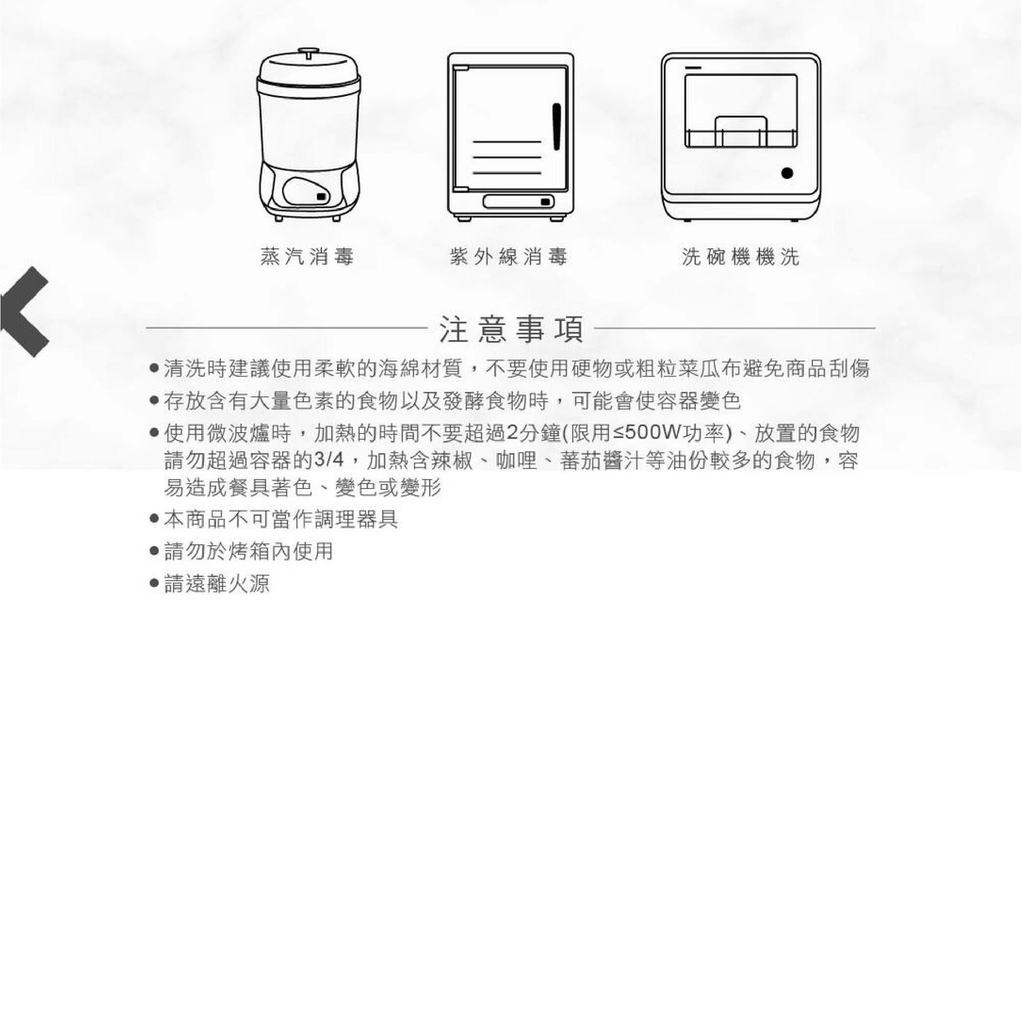 適用於蒸汽消毒、紫外線消毒,並可用洗碗機機洗,徹底消毒用的更安心。