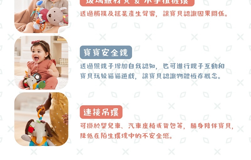 ◆附吊環,可連接到嬰兒車或汽座