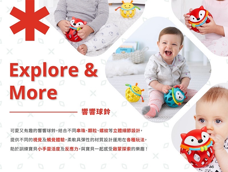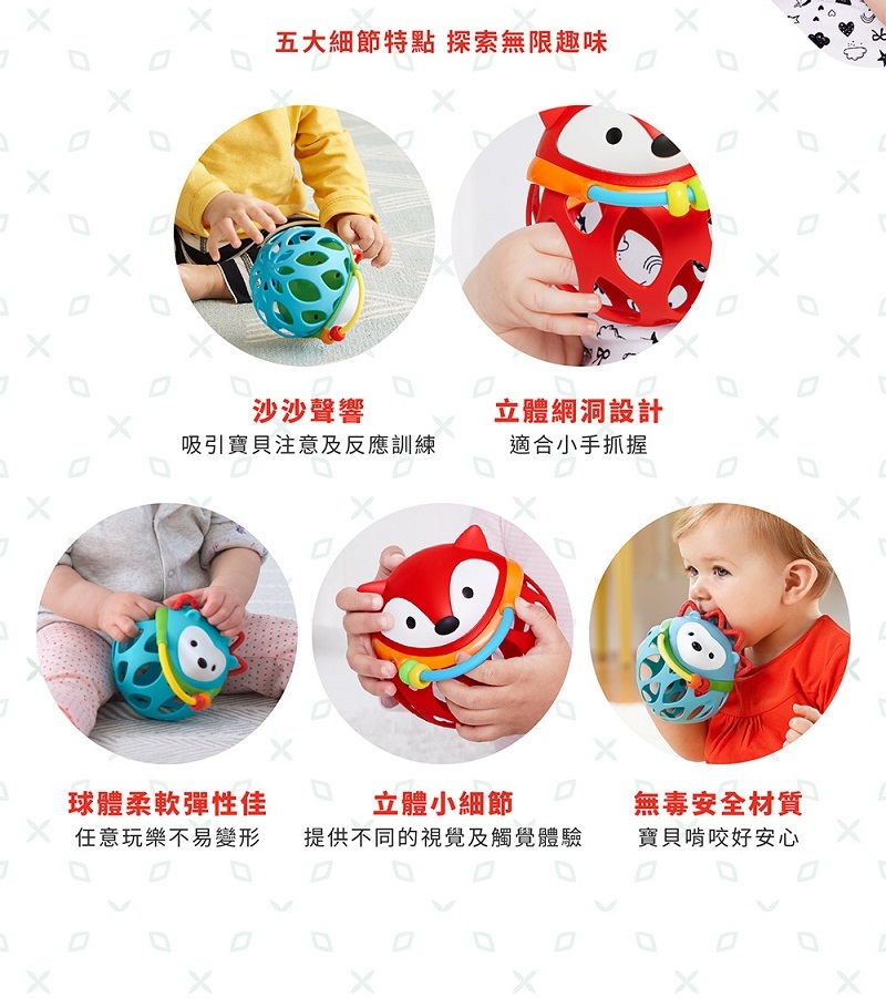 柔軟具彈性的材質設計運用在各種玩法,助於訓練寶貝小手靈活度及反應力,與寶貝一起感受啟蒙探索的樂趣 !