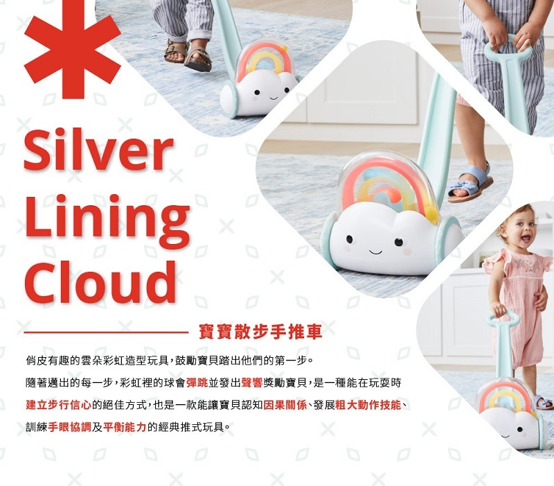可愛俏皮又有趣的雲朵彩虹造型玩具,鼓勵寶貝踏出他們的第一步。