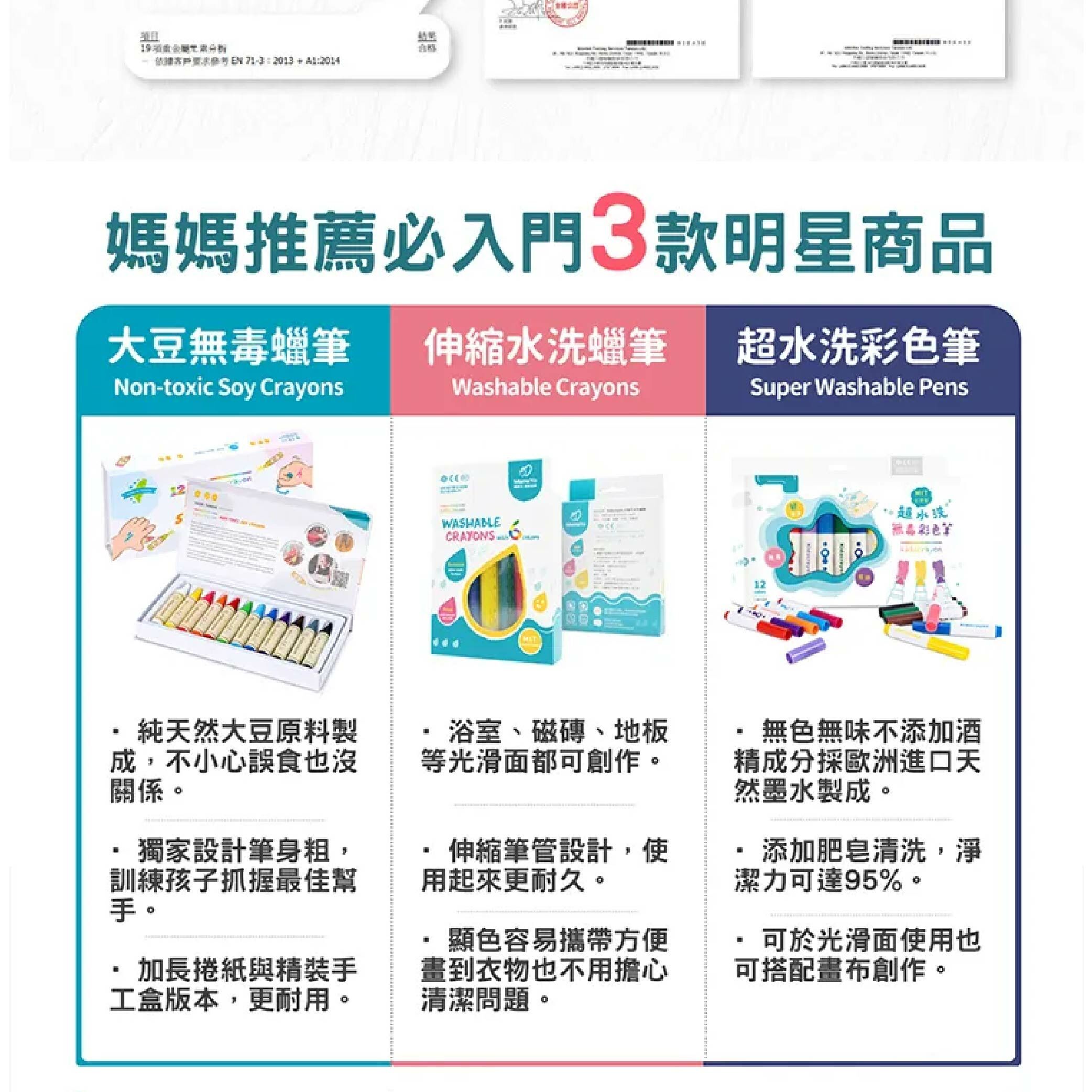 ●幼兒專用無毒蠟筆,顯色容易、安全無毒