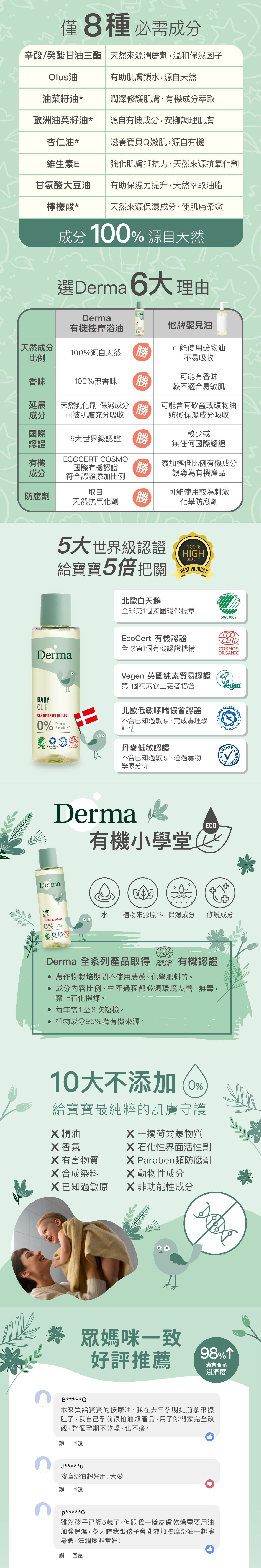 有機、 無香精、 人體無害及環保的寶寶洗護品,堅持使用有機源自天然成分,獨家保濕植萃配方,堅持給寶寶最天然的!榮獲歐盟有機、丹麥哮喘低敏協會認證、北歐人體低害及環保認證 寶寶全身皆可使用-無Parabens、無添加酒精