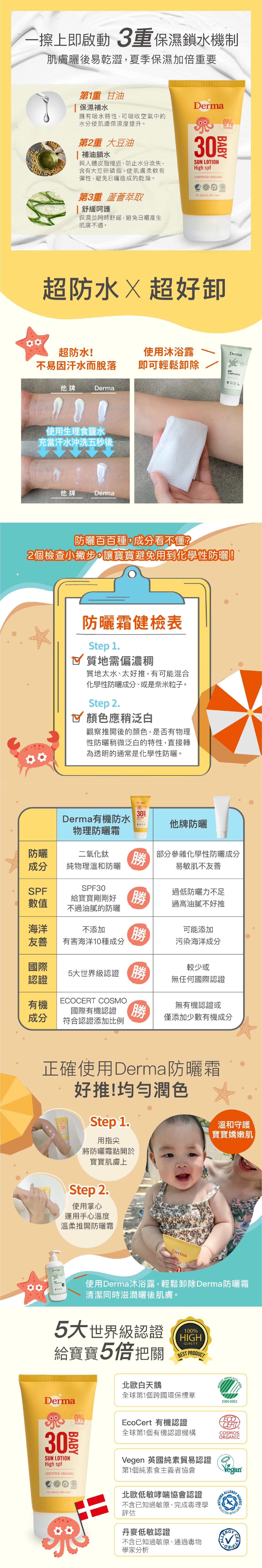 丹麥 Derma 有機寶寶物理防水防曬霜