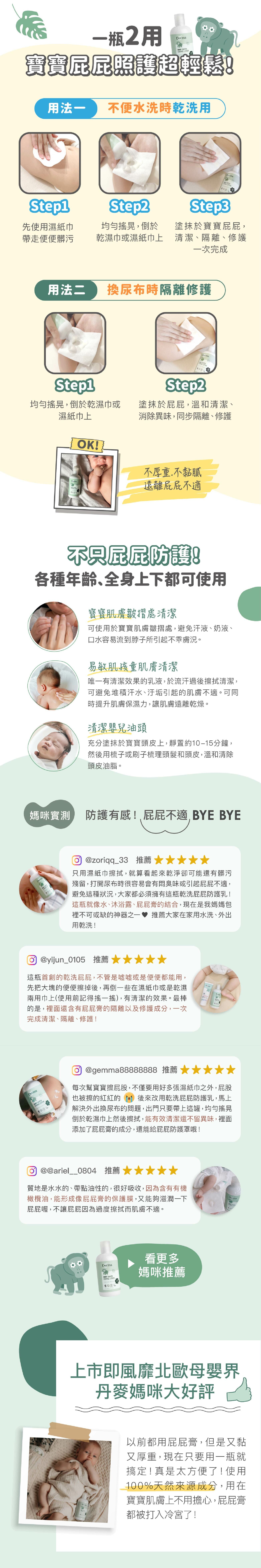 首創!「屁屁防護乾洗乳」,丹麥媽咪人手一瓶,解決外出不能水洗屁屁困擾,一抹完成清潔、隔離、保濕!有效清潔臭味、遠離屁屁不適,媽媽寶寶外出神隊友!