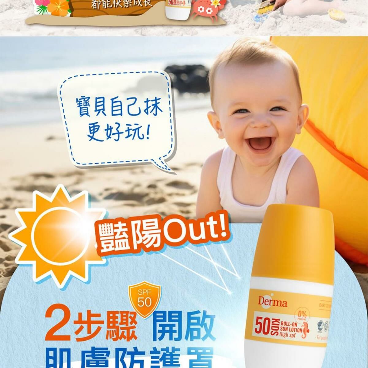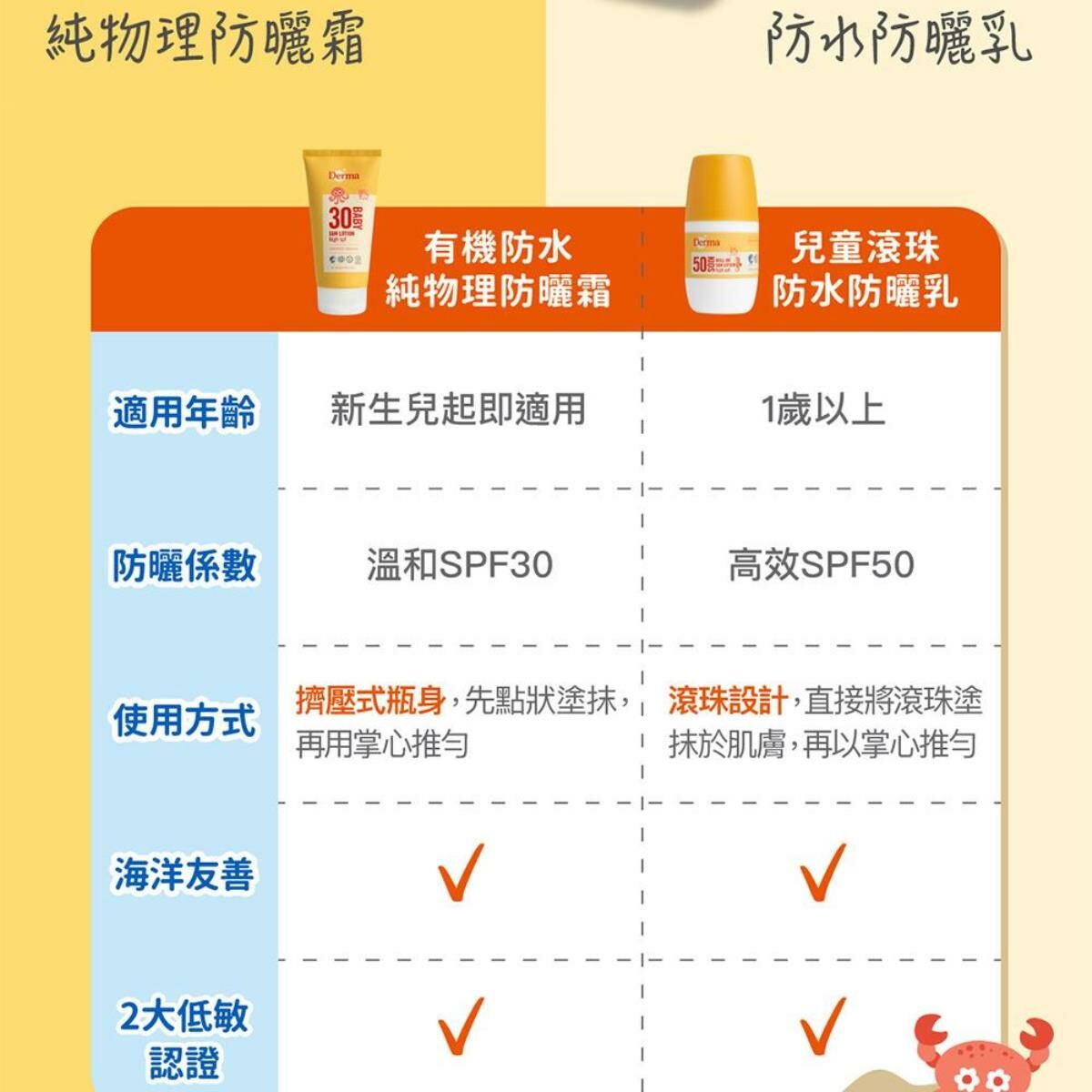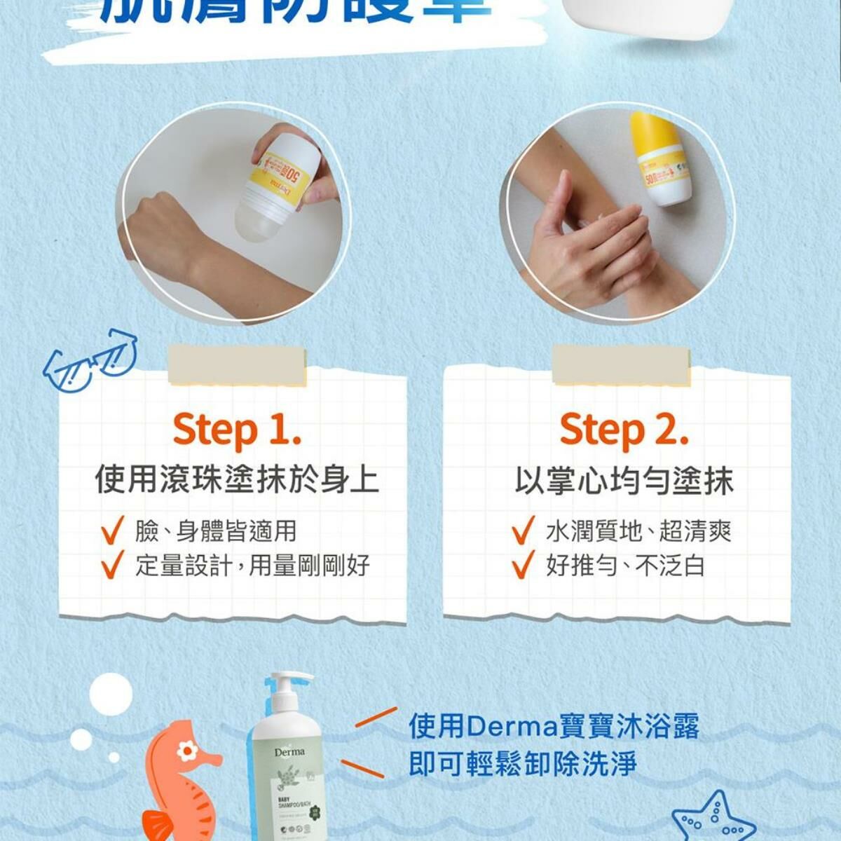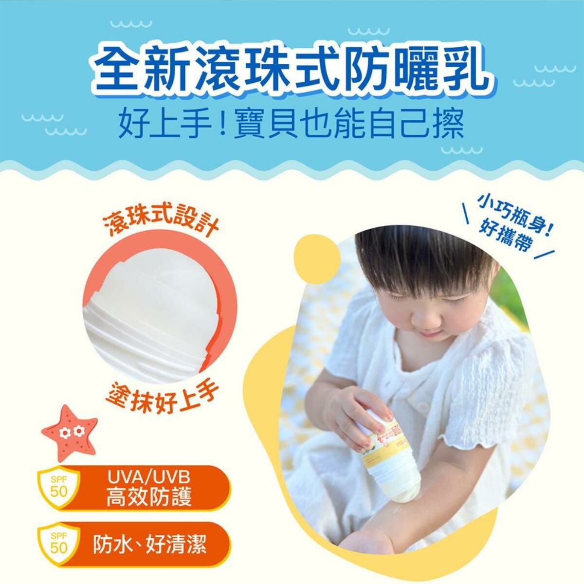 超防水、好清潔,定量滾珠式設計,適合小孩自己塗抹防曬霜,