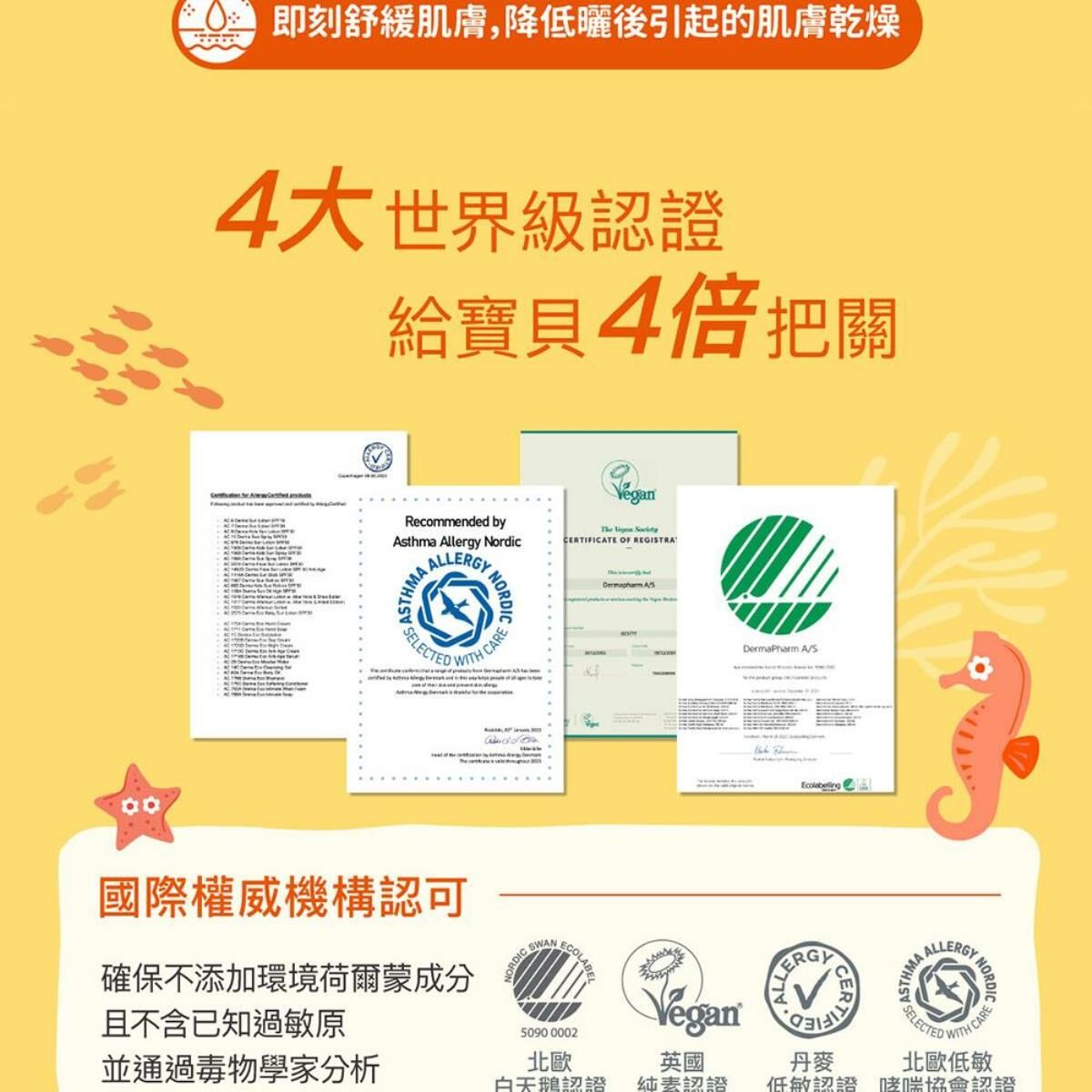 丹麥消委會評鑑最優等,100%無香、0色素、0香精,溫和防曬,