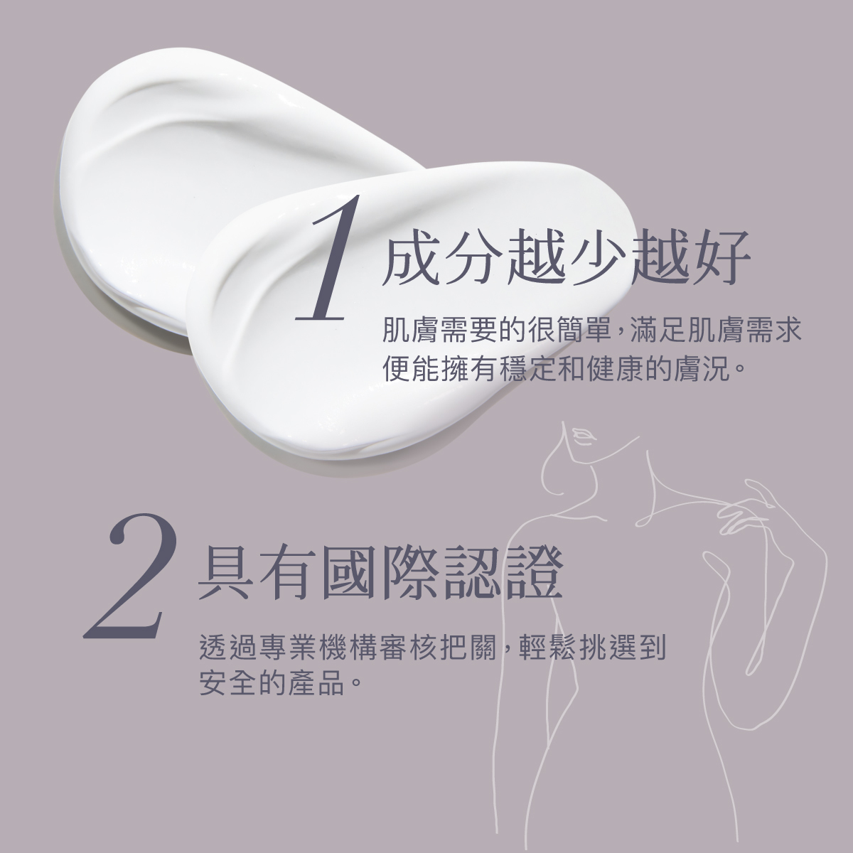 堅持使用低致敏成分,及天然植萃精華滋養肌膚