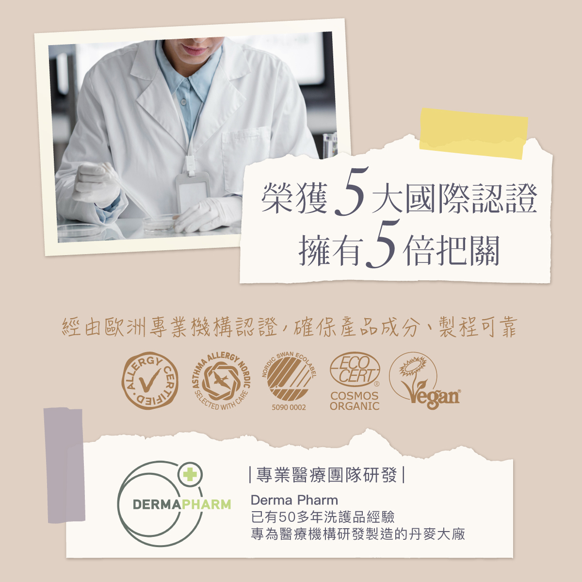 有機大地系列,使用純素來源成分,不添加不需要的化學成分,溫和滋潤肌膚、遠離環境污染帶來的影響。無香味、無動物衍生成分,通過5大世界級認證。無論是一般肌、易敏肌、孕期產後,都能得到最安心呵護。