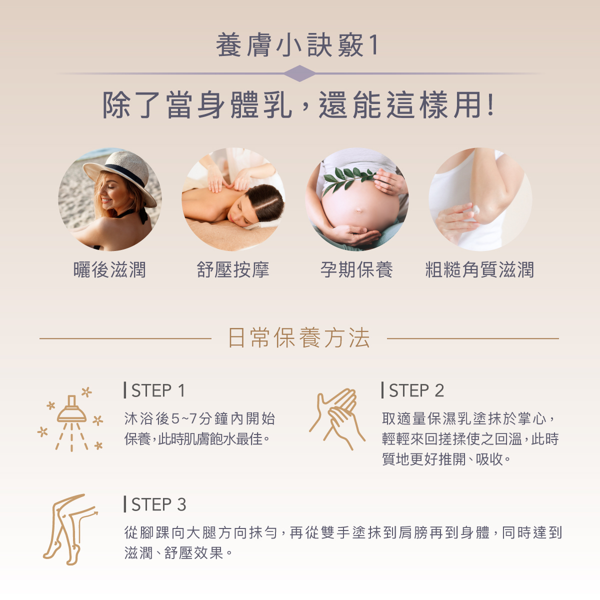 ・ 富含的維生素、胺基酸、複合多醣物質,保濕舒緩肌膚