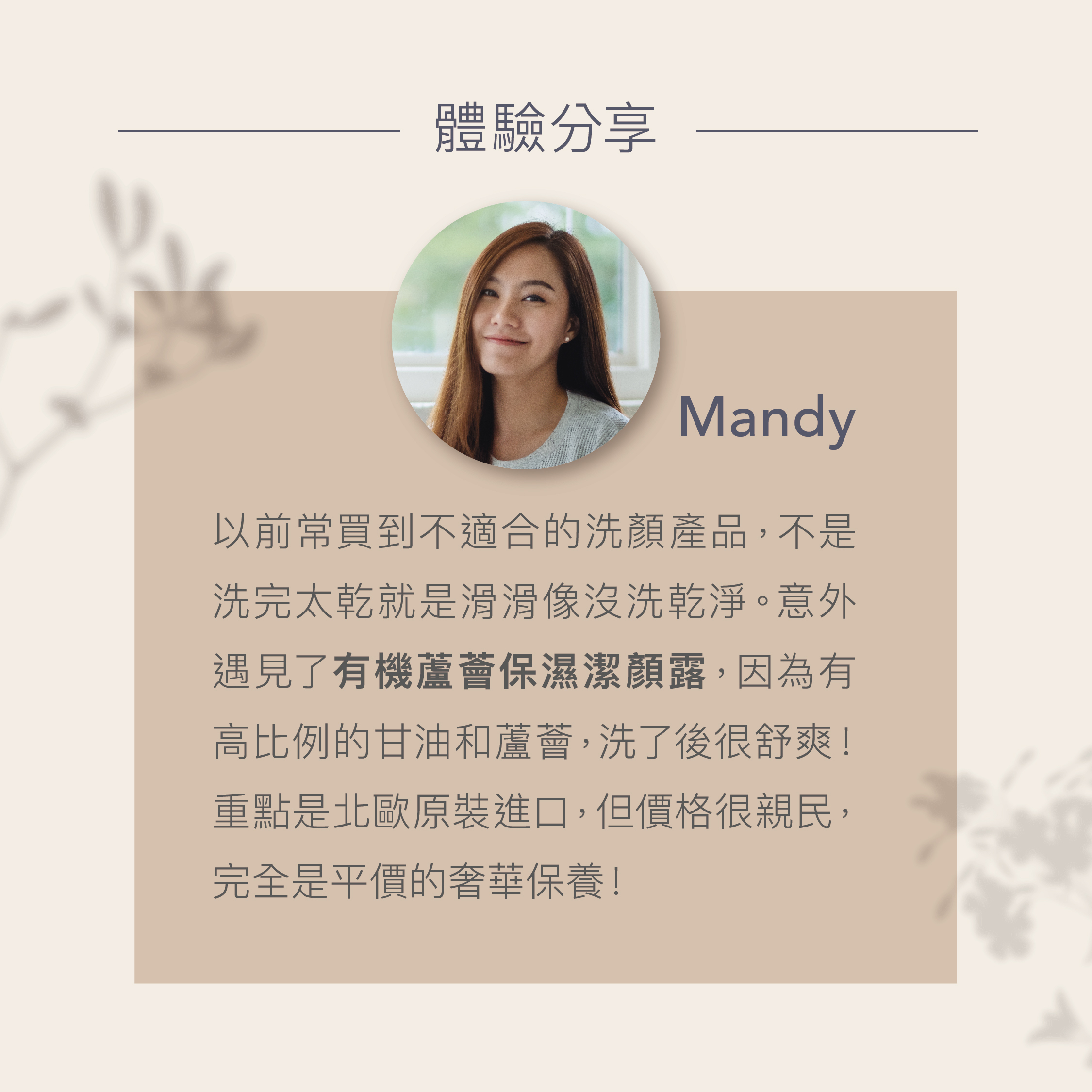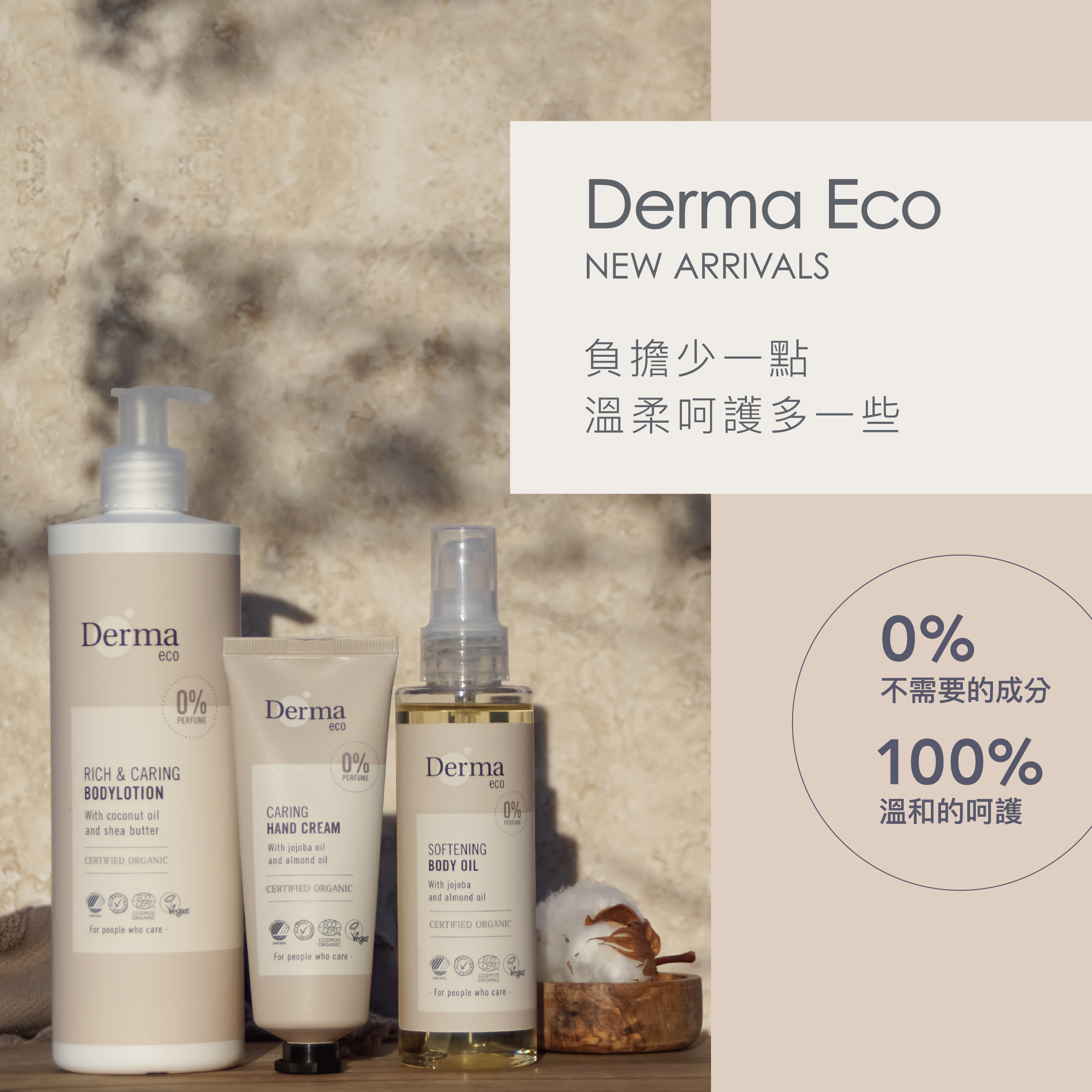 堅持使用有機低致敏成分,及天然植萃精華滋養肌膚