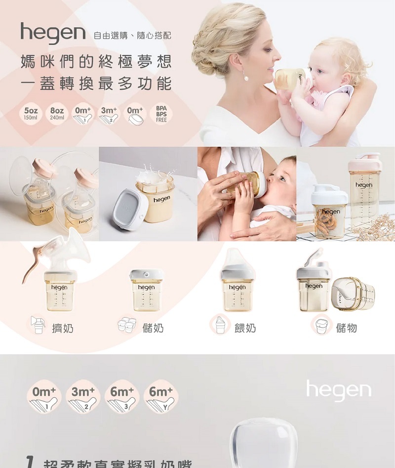 1 x hegen 金色奇蹟PPSU多功能方圓型寬口奶瓶 150ml