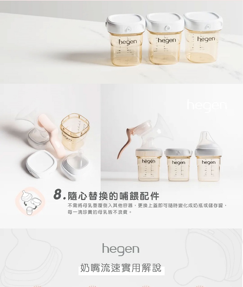 擠奶、儲奶、餵奶、一瓶搞定,擠奶器、轉接器、奶嘴蓋和儲奶瓶蓋,皆可一瓶共用,不浪費任何一滴珍貴母乳。