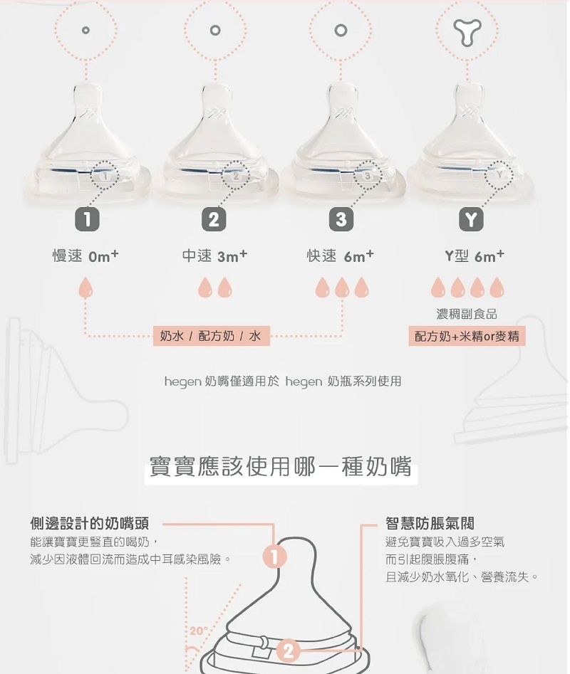 2 x hegen 防脹氣真實擬乳智慧奶嘴|慢速 (奶嘴適合1-3個月寶寶使用)