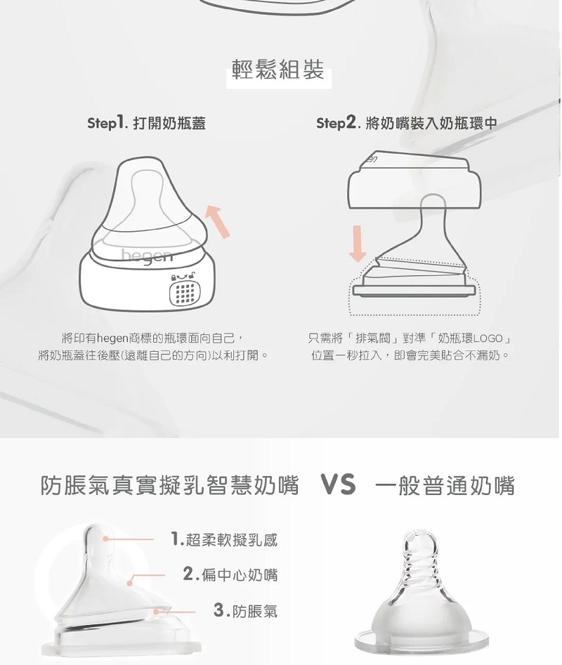 1 x hegen 防脹氣真實擬乳智慧奶嘴|慢速 (奶嘴適合1-3個月寶寶使用)