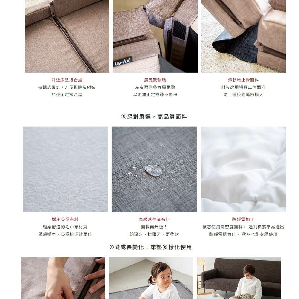 日本färska創立嬰幼兒傢俱的「新世代標準」,源自日本正統設計,並注入多功能的組合變化,延長產品使用壽命,帶給每個家庭一個舒適安全的生活空間。