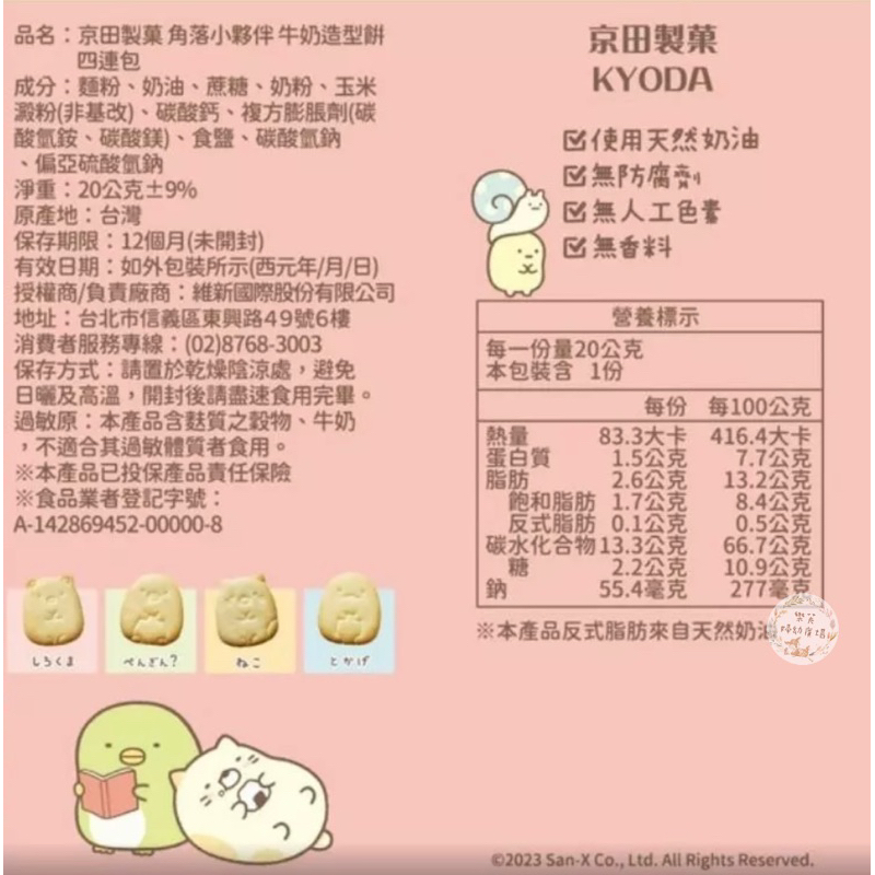 .品名:【京田製菓】角落小夥伴 牛奶造型餅四連包
