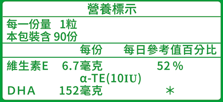 成份:DHA藻油(含DHA40%) 、維生素E油。